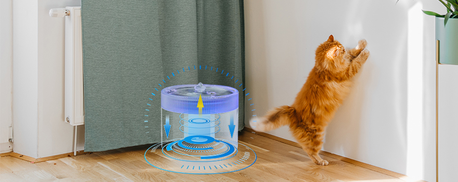 System filtracji obiegowej fontanny charakteryzuje się wszechstronną konstrukcją oczyszczania 360°. Woda stale krąży w urządzeniu, skutecznie usuwając zanieczyszczenia, zapachy i bakterie, zapewniając niezmiennie świeżą i czystą wodę. Funkcja nieprzerwanego oczyszczania przez całą dobę zapewnia zwierzętom zawsze dostęp do świeżej, zdrowej wody, zwiększając w ten sposób ich spożycie i skutecznie zapobiegając problemom z drogami moczowymi oraz odwodnieniu.