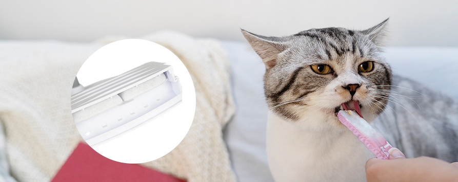 Dwuwarstwowa filtracja z węglem aktywnym sprawia, że woda obiegowa jest tak czysta jak nowa, a woda spełnia rygorystyczne normy picia, chroniąc zwierzęta przed chorobami żołądkowo-jelitowymi.